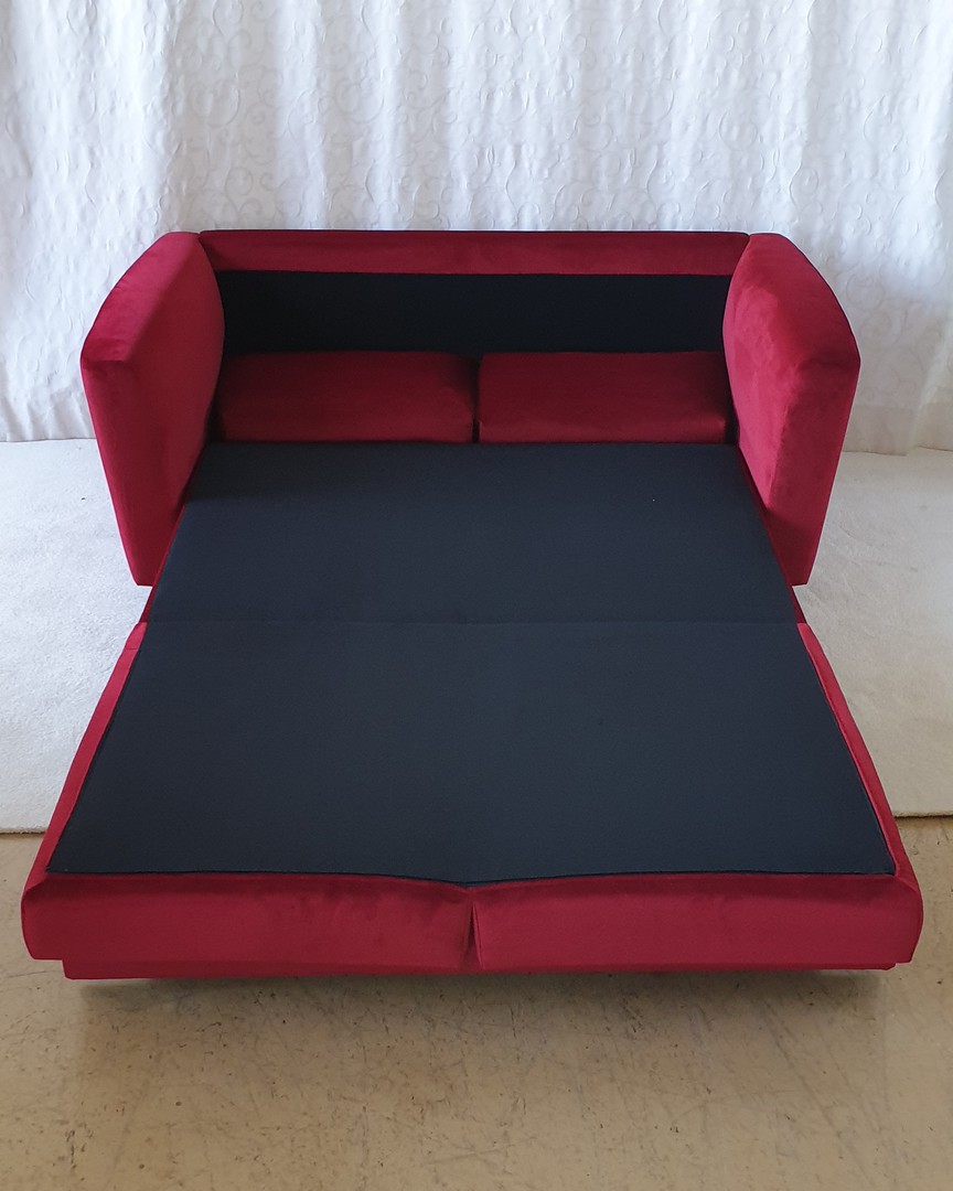 Neu bezogen wurde das Sofa mit dem Stoff Touch Farbe 051 der Firma Fine Textilverlag.